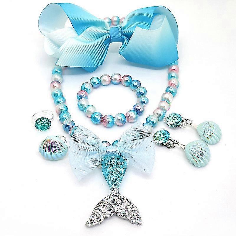 Baby Girls Beads Necklace Set Fashion Mermaid Tail Pendant Child Kids Adjustable Lovely Necklace Charm Chunky Jewelry For Gift