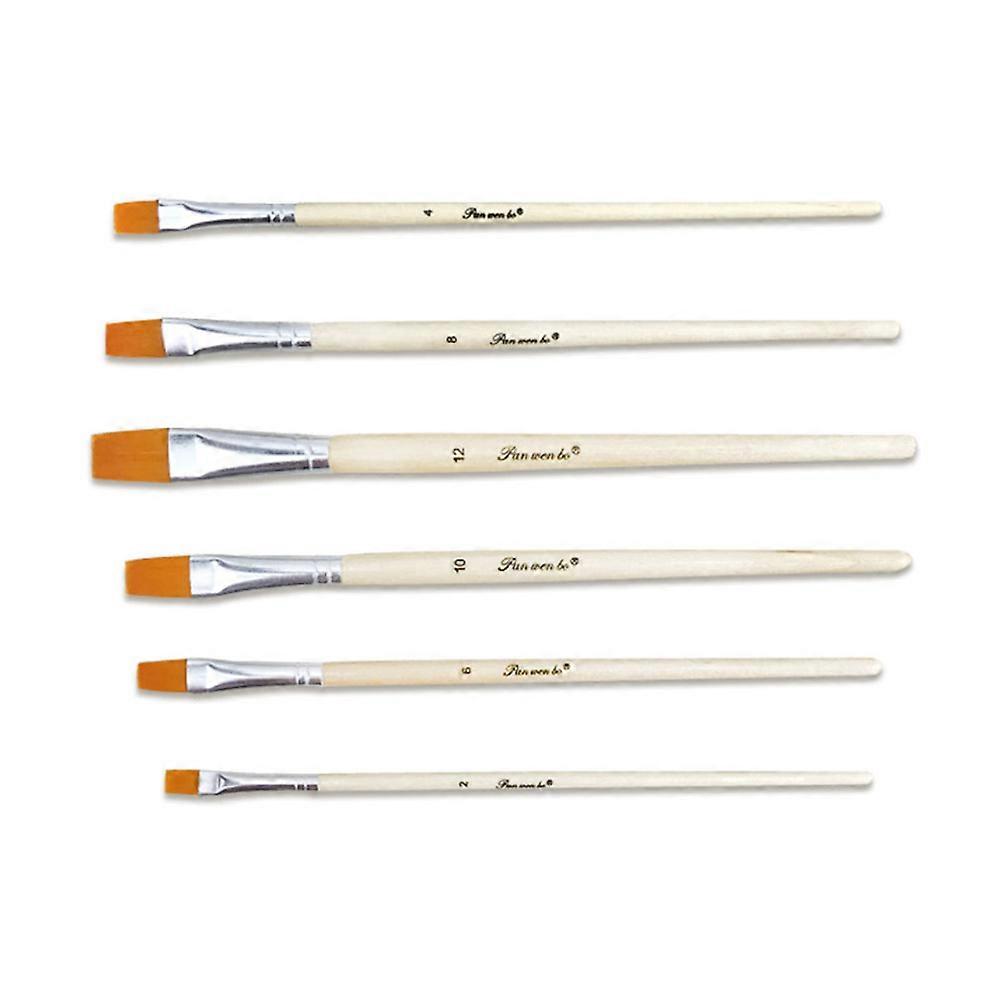 Nylon Paint Brushes with Wood Handles and Aluminum Ferrules for Art Painting 6 Pieces Assorted Colors