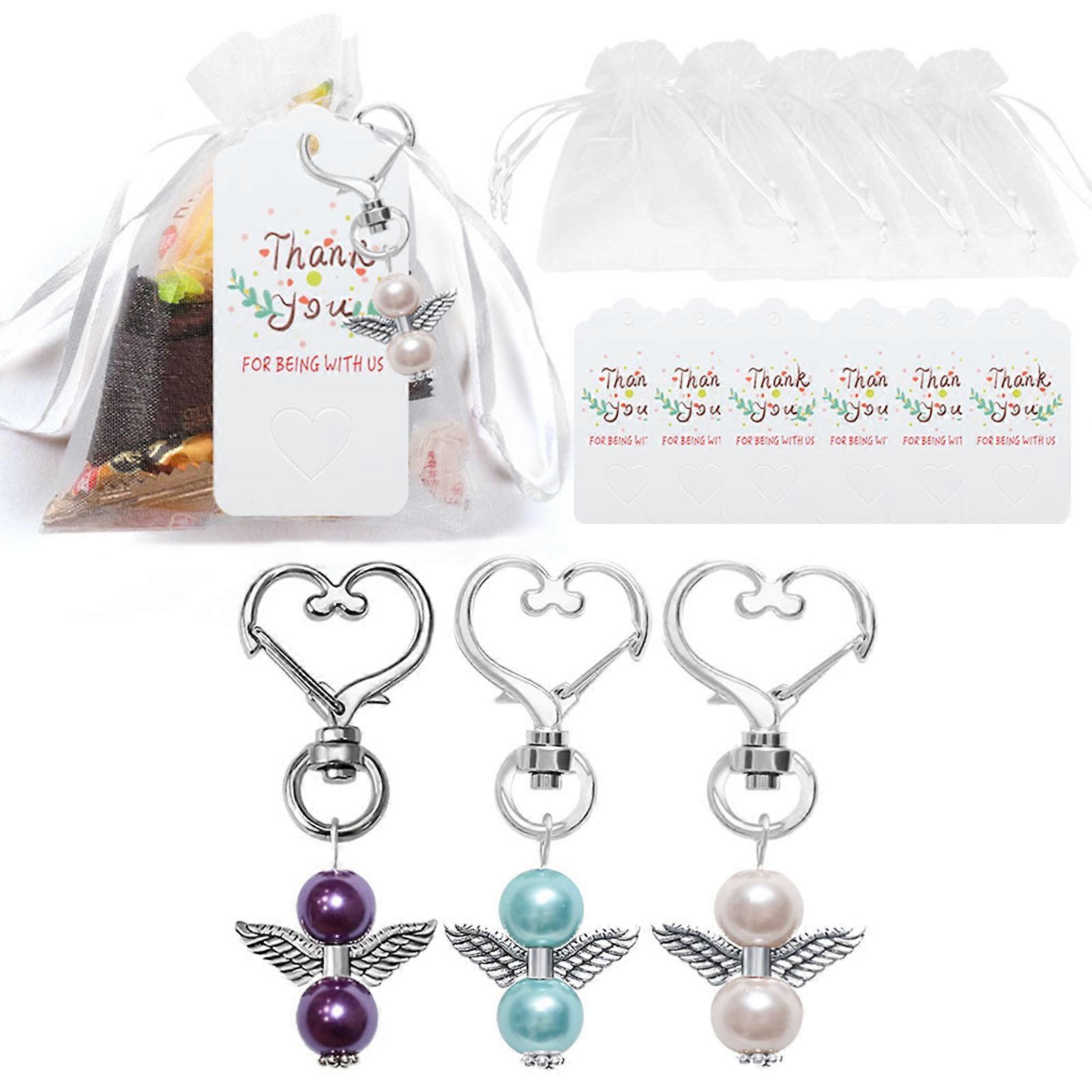 New Arrive 20 Pcs Angel Keychain with Blue Pearl Angel Pendant Keyring Clips+Organza Gift Bags+Thank You Tags