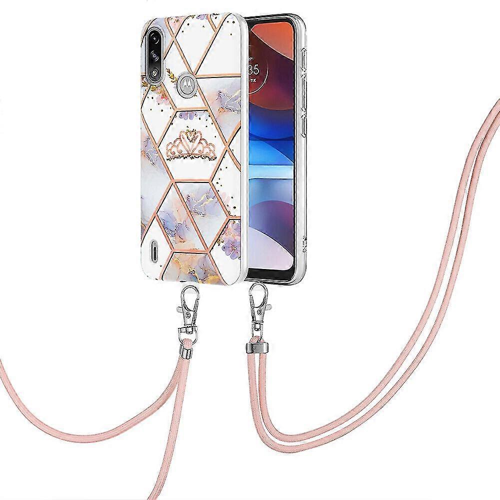 New Case Compatible With Motorola Moto E7i Power Marble Bumper Necklace Phone Case Crossbody With Strap, Lanyard Neck Strap Brilliant Marble Phone Cov