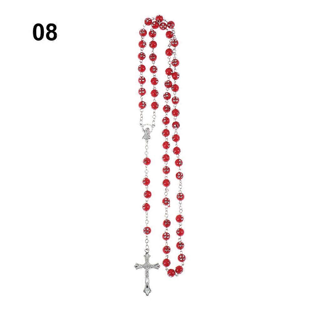 New Fashion Handmade Round Glass Bead Catholic Rosary Quality Bead Cross Necklace Beads Cross Religious Pendants Necklace