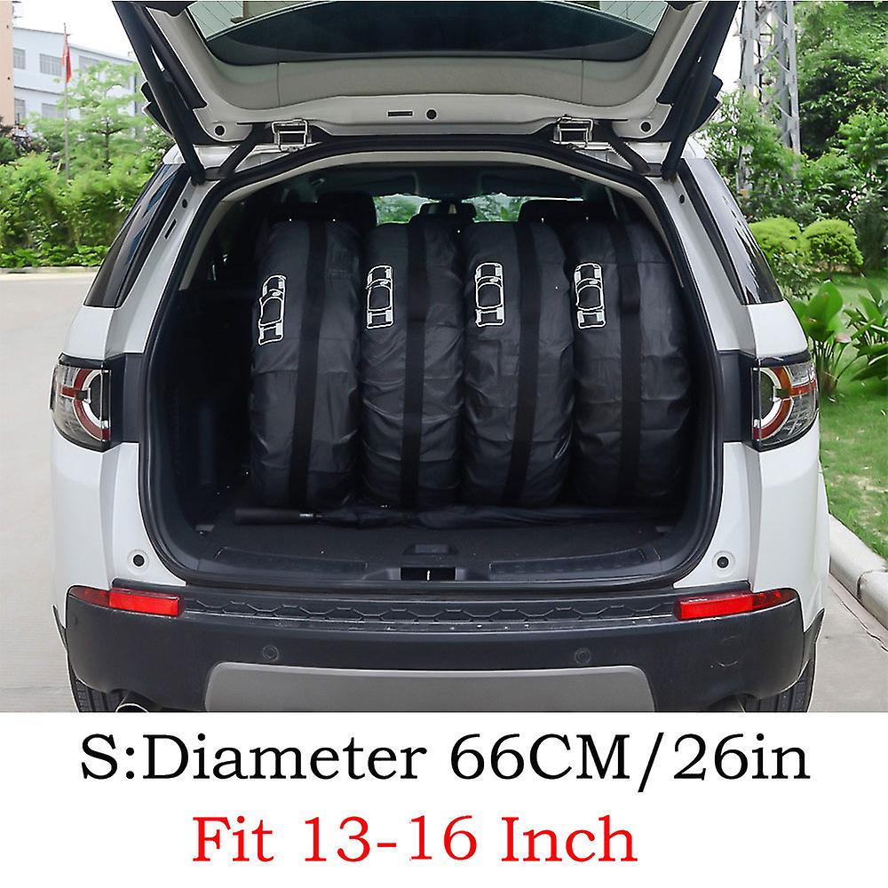 Features:-The size can be freely adjusted, and there are straps on both sides for reinforcement; with handle, very convenient to carry. -Effectively keep the spare tire clean. -Suitable for SUV, business cars, small cars, protecting your car spare wheels. -Full webbing handle for easy movement. -Small pocket design, can put tools. -Hand strap design is more convenient to carrySpecification:-Material: S-190T Polyester taffeta, L-210T Polyester taffeta - Color: Red/Gray/White -Size: S/L -Application: it is suitable for storing car spare tyres -Applicable tire size: S (diameter 66CM/26in) Fit for 13-16 inch tires L (diameter 80CM/31in) Fit for 16-20 inch tires (Please confirm the size of the tire before purchasing.) - Quantity: 4pcs - Placement On Vehicle:Front,Rear,Left,Right - Universal For SUV, business cars, small cars.Calculation method for Tyre diameter:E.g: Tire specifications 195/55R15 Tire Diameter conversion method: Diameter(cm)=W*AR/500+R*2.54 Formula: Diameter= W*AR/500 + 2.54*R= 195*55/500+2.54*15 =59.55 According to the calculation, Small size is suitable.Note:If your car tyre R value is less than R16 , you can choose Small size directly. If your car tyre R value is R16,Please check below: Commonly used specification S:Tyre diameter less than 66cm L: Tyre diameter less than 80cmPackage Includes:4PCS Car Tire Cover Case