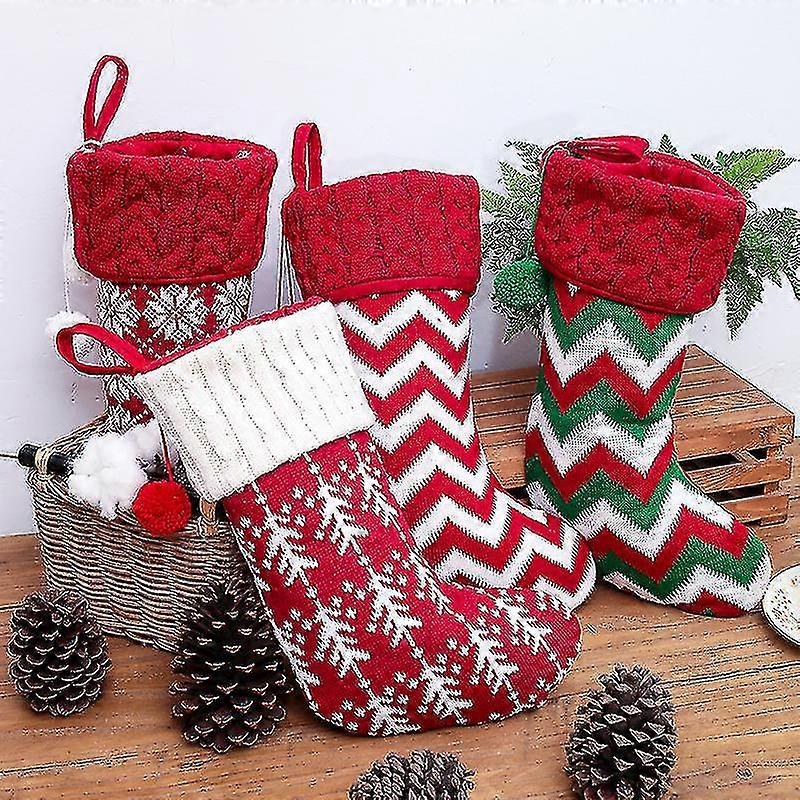 New Christmas Ornaments Knitted Christmas Stockings Woolen Socks Red And White Elk Gift Bags Children's Gift