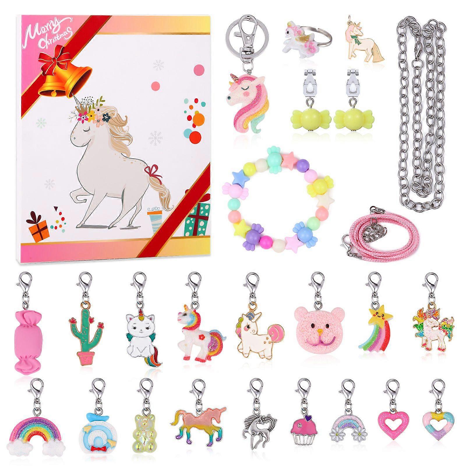 New Christmas Gifts: 24 Countdown Calendar, Advent Blind Box, Unicorn Diy Bracelet, Necklace, Children's Set