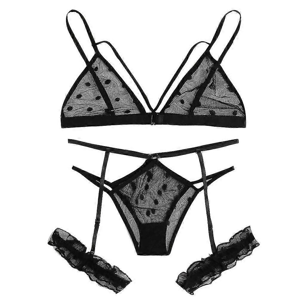 New Women Plus Size Lace Lingerie Bra+thong Underwear Set Black Sleepwear
