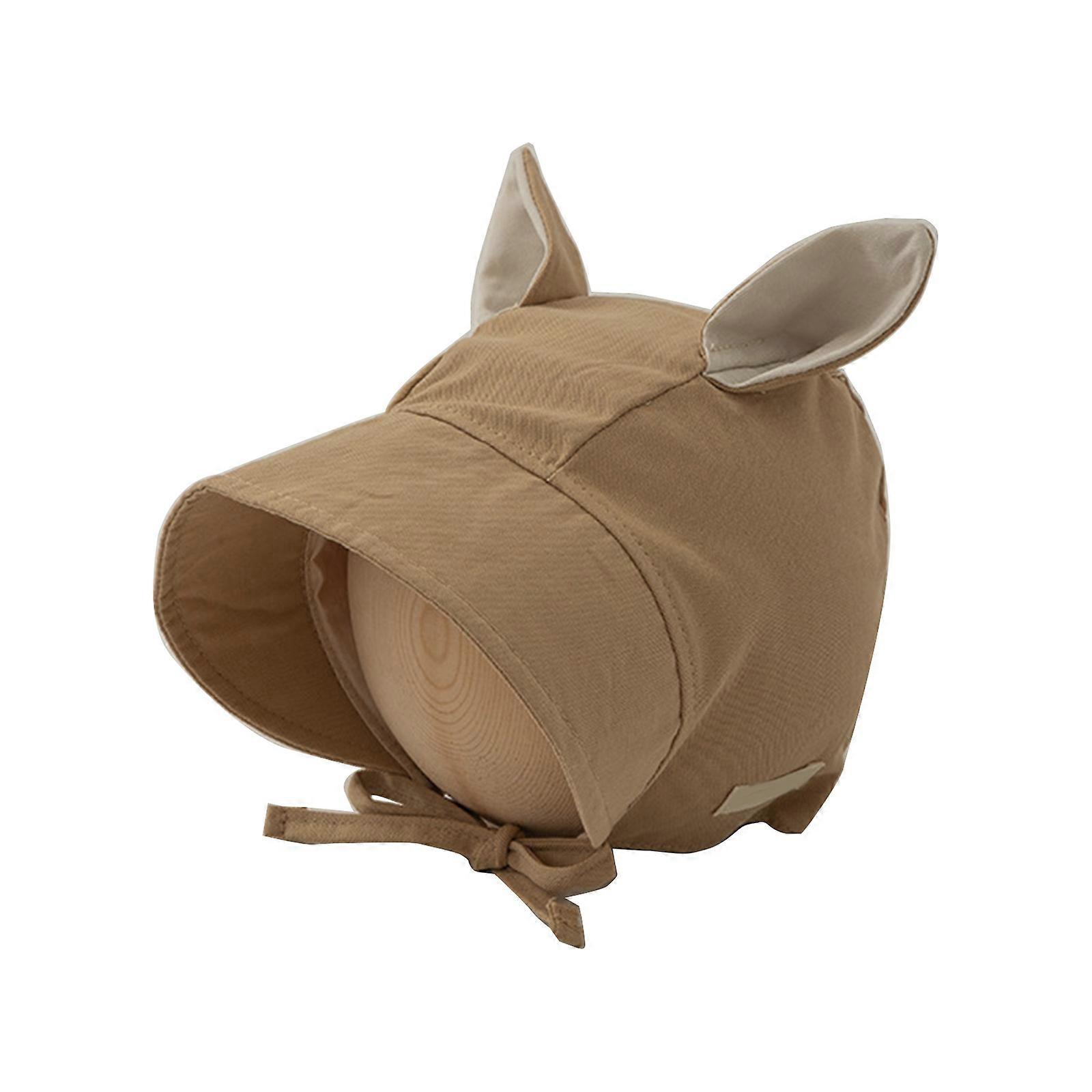Newborn Baby Hat with Long Ears Designing, Infant Bonnet with Large Brim Spring Summer Toddlers Sun Protections Hats Khaki