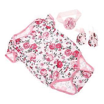 Newborn Baby Romper 3pcs Rose Pattern Bodysuits With Flower Headband And Shoes Cotton Short Sleeve One-piece Jumpsuit Outfits Clothes For Reborn Dol