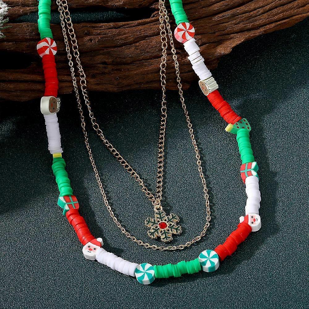 2023 New Cartoon Girl Gift Snowflake Santa Claus Christmas Tree Necklace Set Christmas Models Chain Rice Beads Bells Fawn Necklace 3pcs