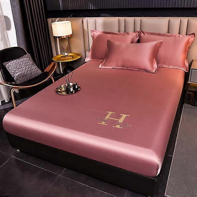 New Embroidery Printing Cool Fitted Sheet Four Seasons Universal Fitted Sheet Water -Washed Ice Silk Fitted Sheet For Home Hotel