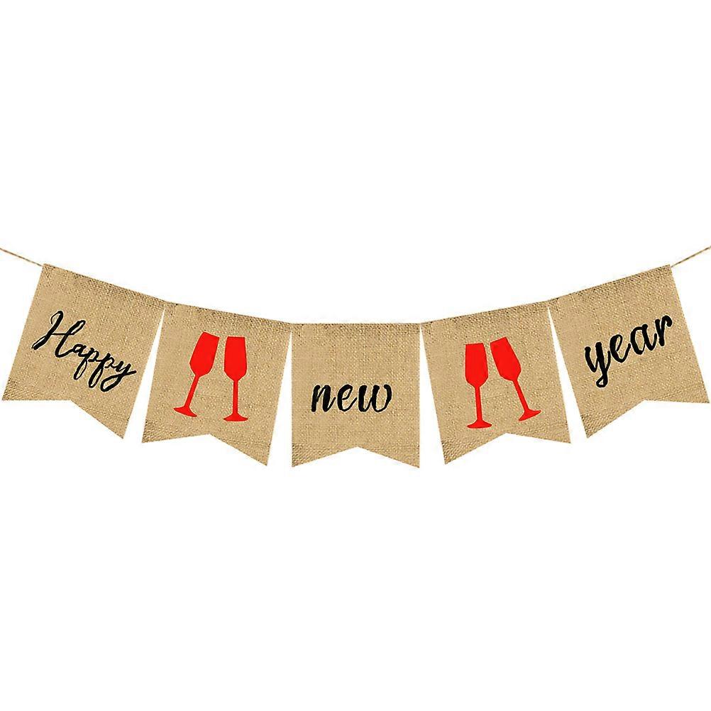 New Party Hanging Banner Burlap Banner for Happy New Year Decor 3Pcs