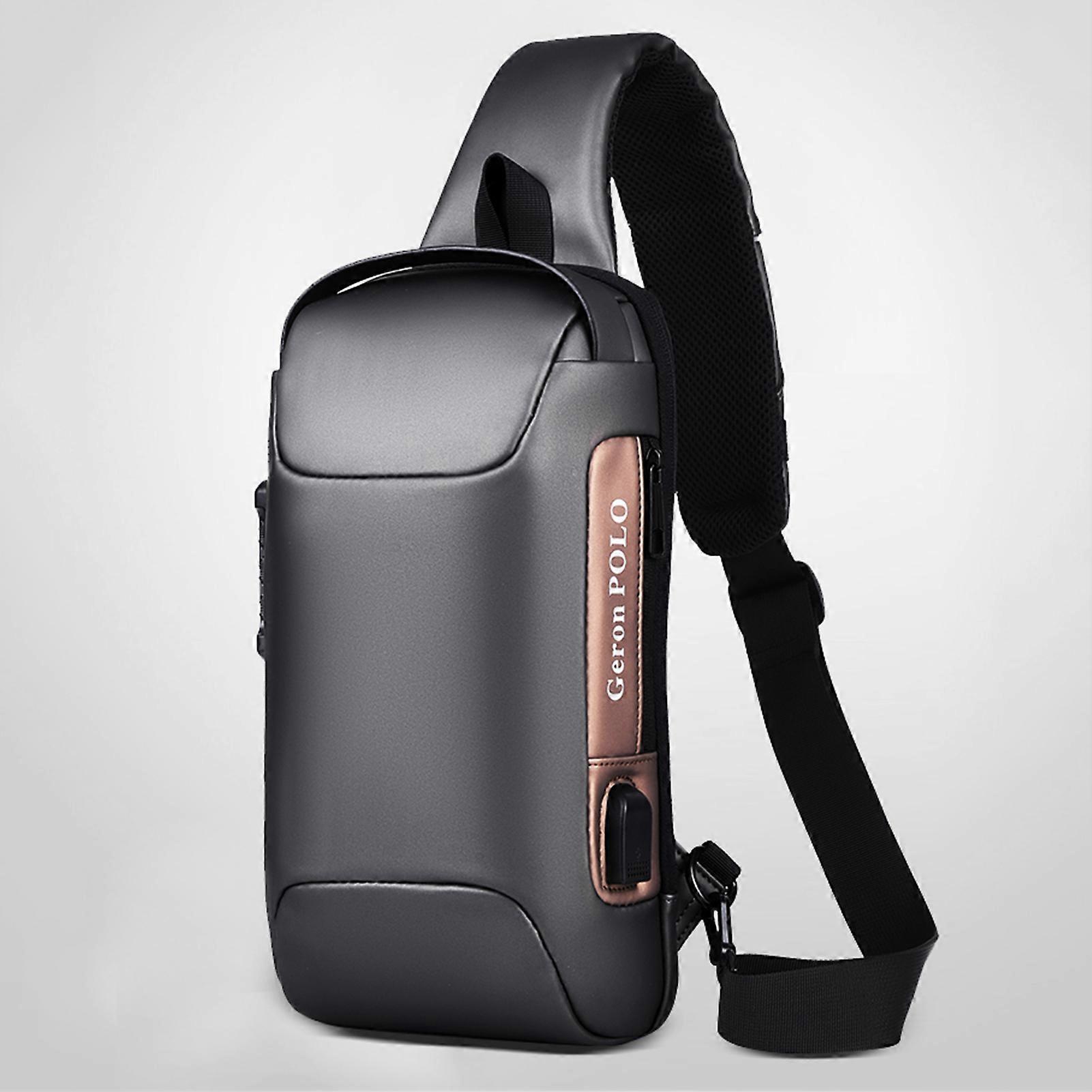 New Style PU Leather Chest Bag 330x170x70mm Model 7666 Black Gray