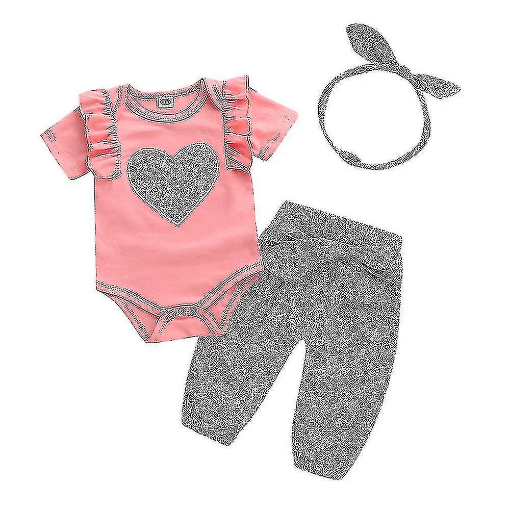 Toddler Newborn Baby Girls Ruffle Floral Romper Tops Pants Headband Outfit