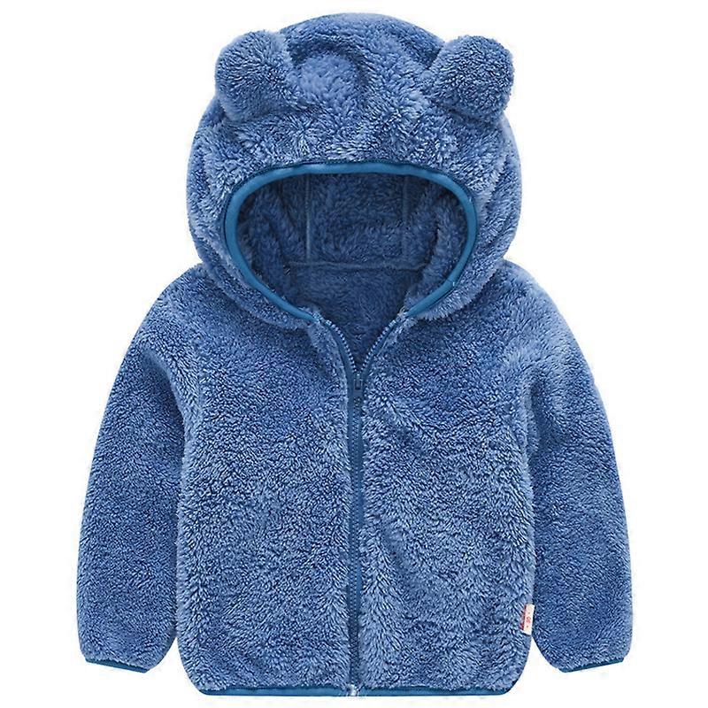 Toddler Kids Baby 3D Ears Hooded Fleece Coat Hoodie Winter Teddy Bear Solid Zipper Jacket Blue