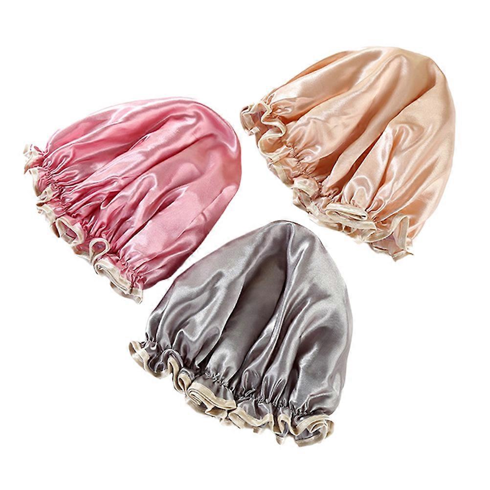 Shower Hats Women Thicken Bathing Adults Pink Golden Grey 27x11cm Waterproof 3Pcs