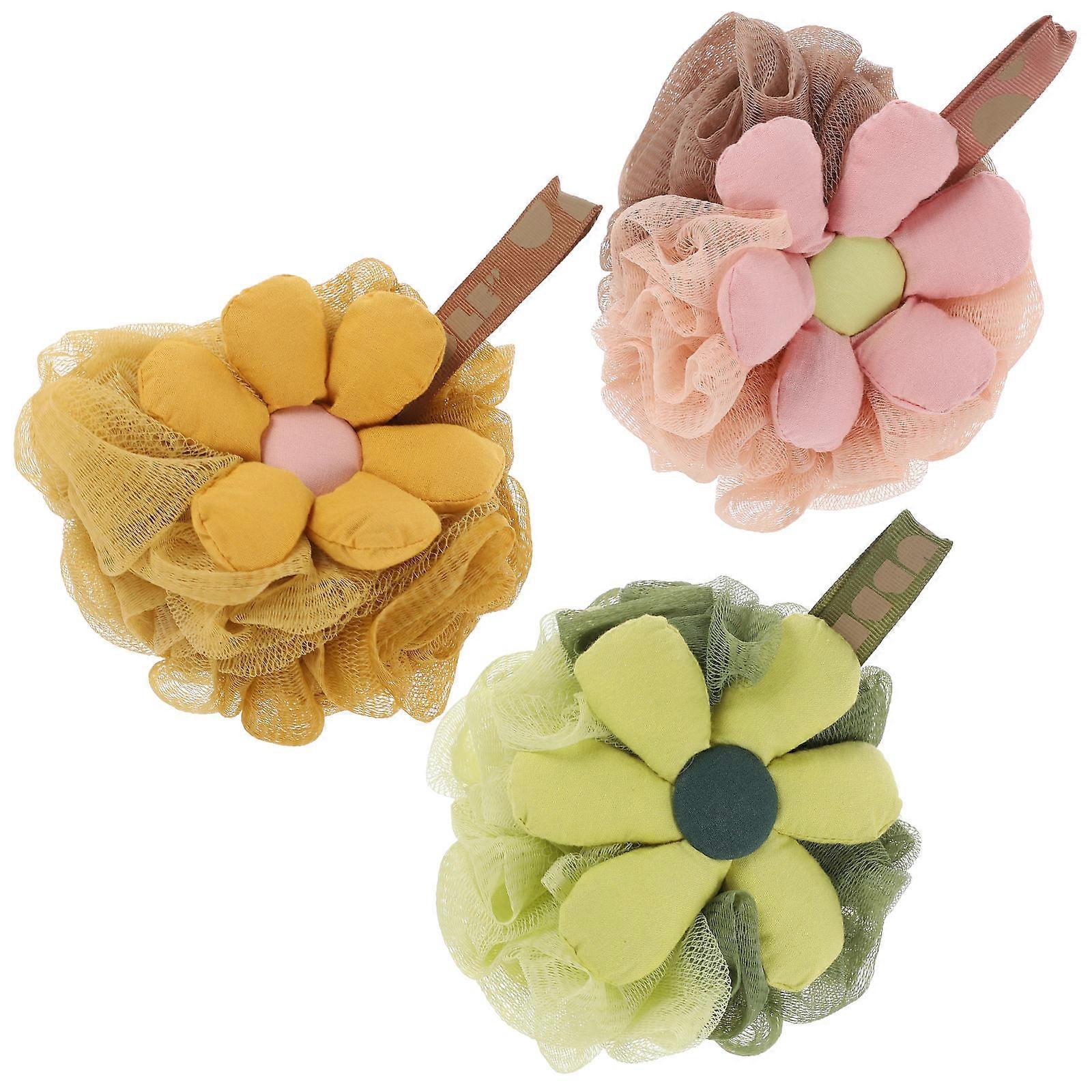 Bath Sponges Shower 3Pcs Flower Shape Loofah Sponge Accessories For Women Assorted Color Body Scrubbing Cleaning