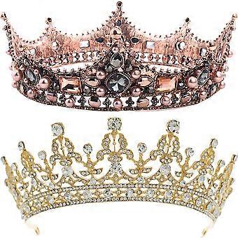 Νύφη Crown νυφικό μαλλί Band Headpieces για τις γυναίκες Κόμμωση γάμου χρυσό στρογγυλό vintage μπαρόκ στυλ 15.5x15.5cm 2Pcs