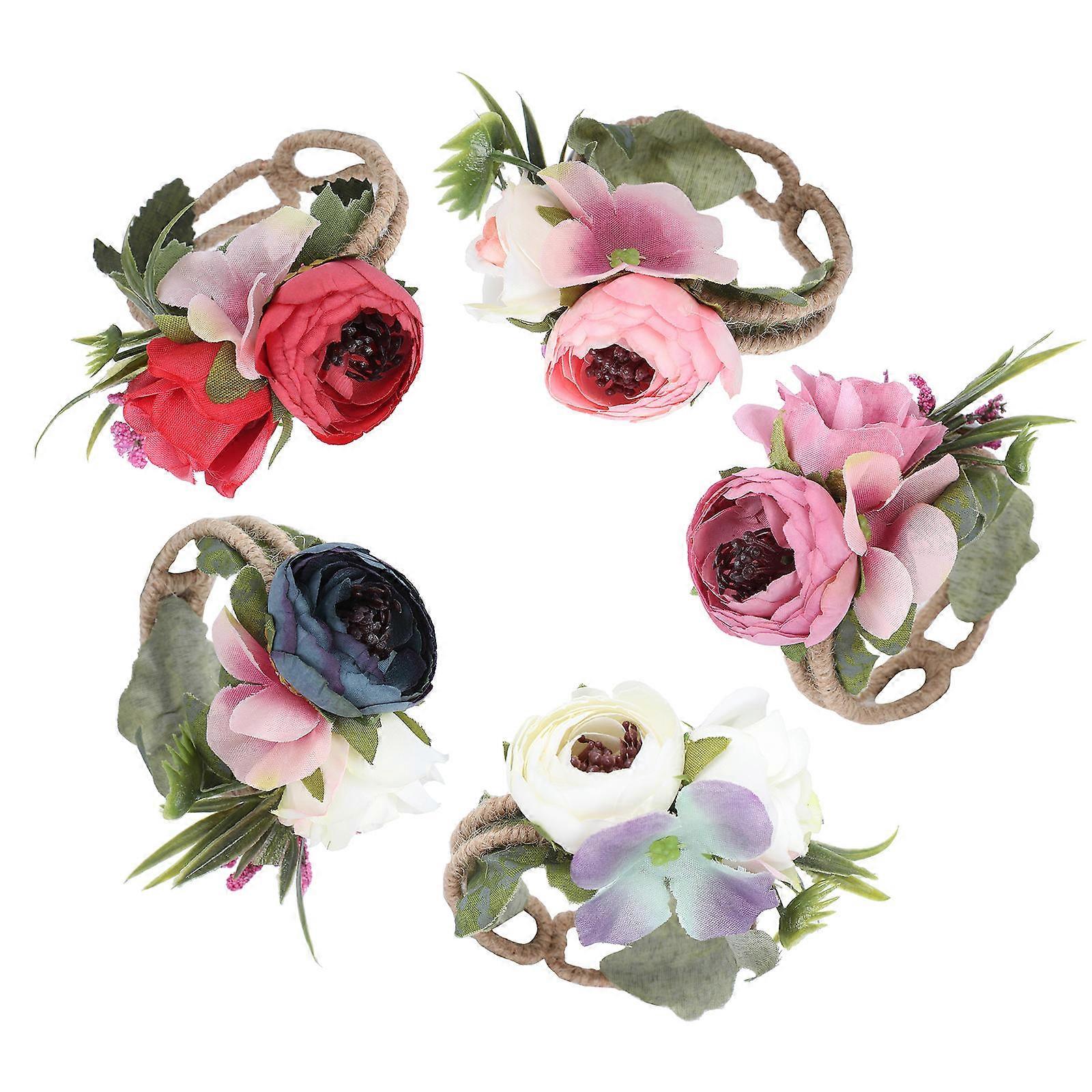 Wrist Flower Corsage Bracelet Bridal Cloth For Wedding Prom Artificial Flowers 5Pcs