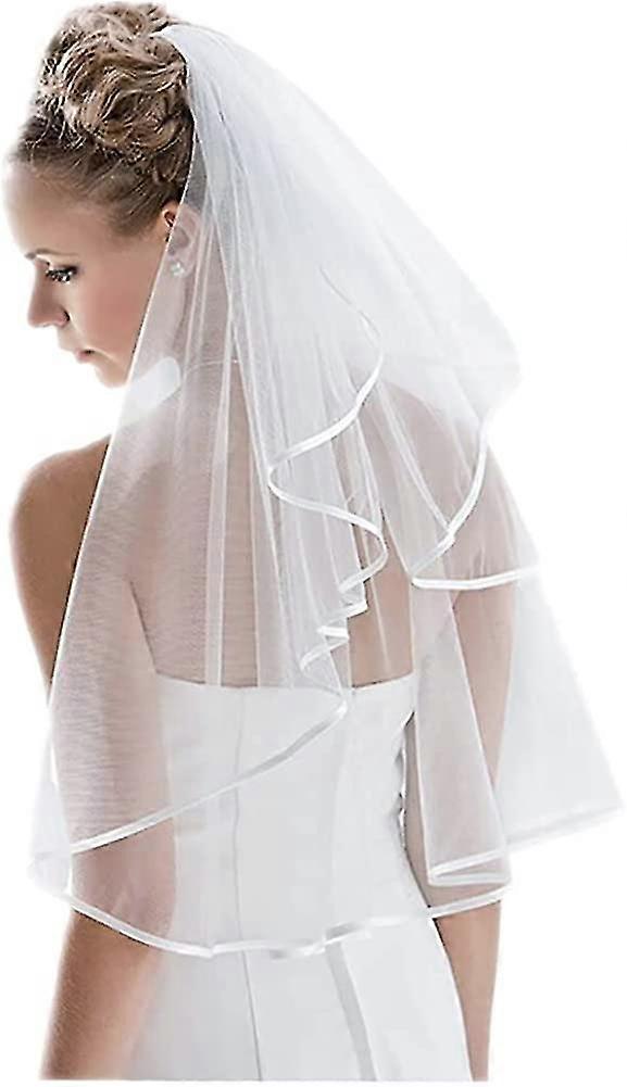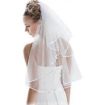 Bridal Veil Women's Simple Tulle Short Bachelorette Party Wedding Veil Ribbon Edge Wi