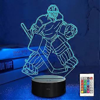 Ice Hockey Goalie Night Light 3d Optical Illusion Lamp With 16 Colors Remote Control (birthday Gift Idea)