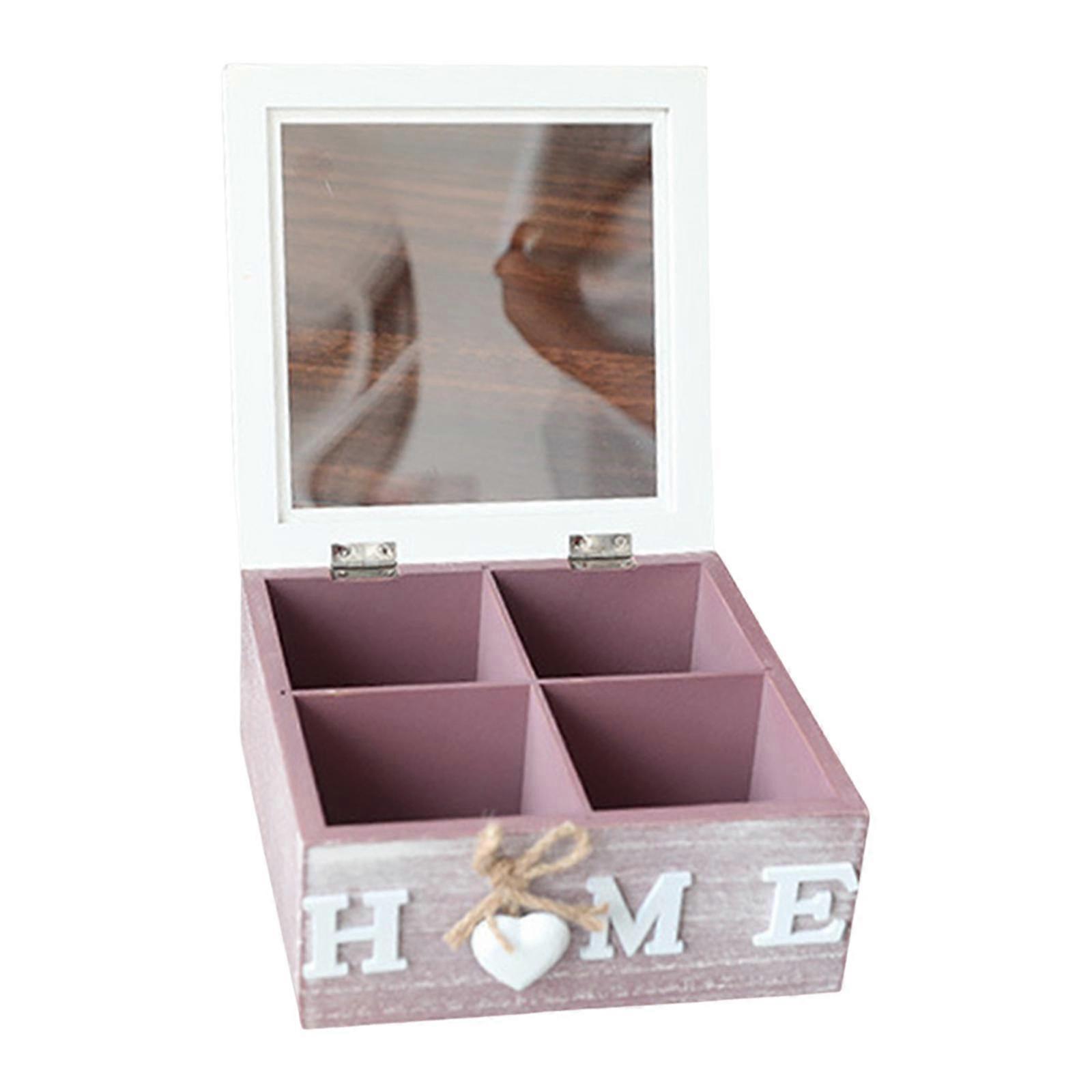 Wooden Storage Box Office Supplies with Clear Lid Holder 4 Compartments Desk