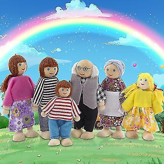 Ξύλινα έπιπλα κούκλες σπίτι οικογένεια μινιατούρες 6 άτομα που θέτουν κούκλα παιχνίδι