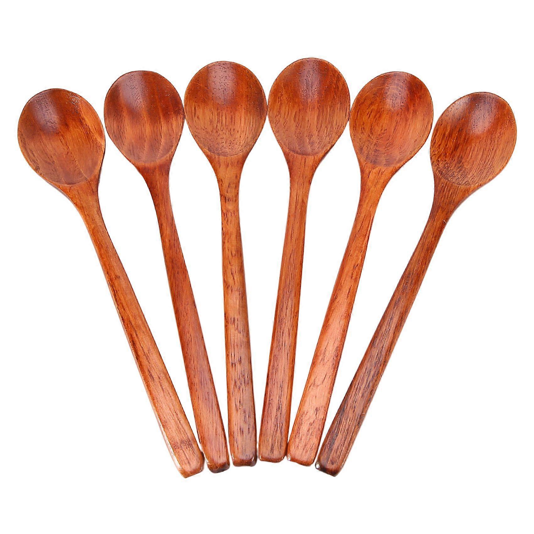 Wooden Spoons, 6 Pieces Wood Soup Spoons Compatible Eating Mixing Stirring, Long Handle Spoon Kitchen Uten