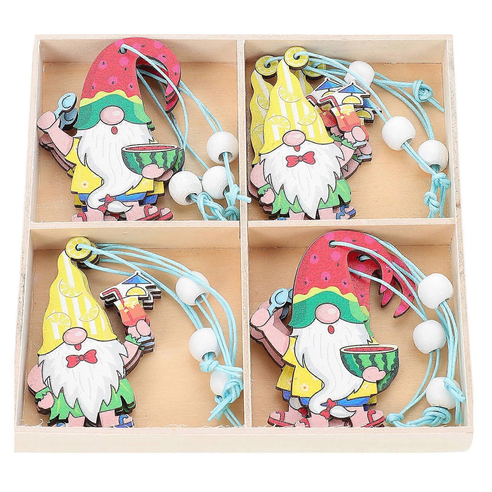 Wooden Hanging Gnome Ornaments for Summer Hawaii Decor 48Pcs