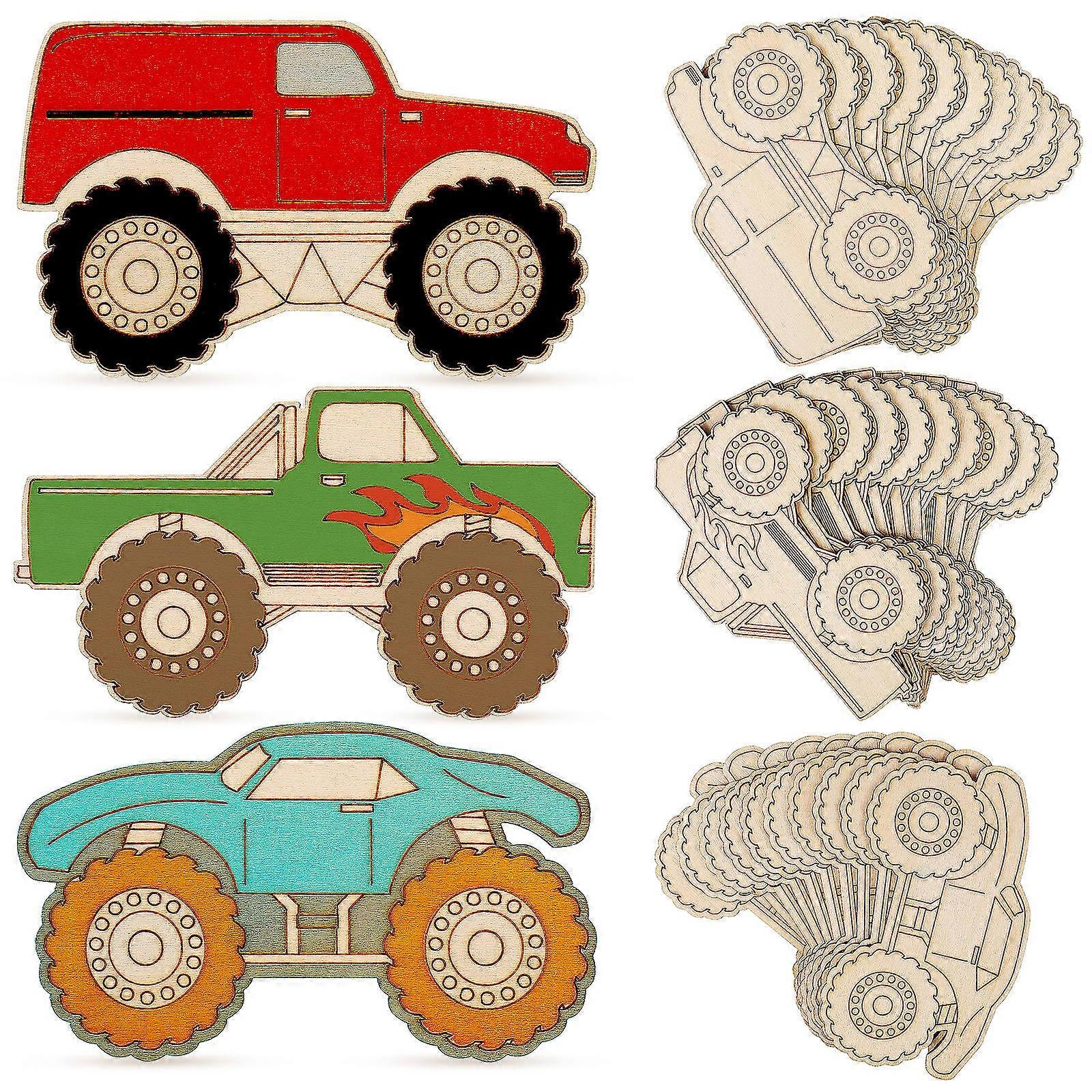 Truck Cutouts Crafts Wooden Car Ornaments For Painting Vehicles Decorations Handmade Unfinished Wood Cutouts 30Pcs