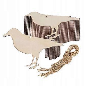 Wooden Bird Ornaments Halloween Crow Shape Plaques Unfinished Wooden