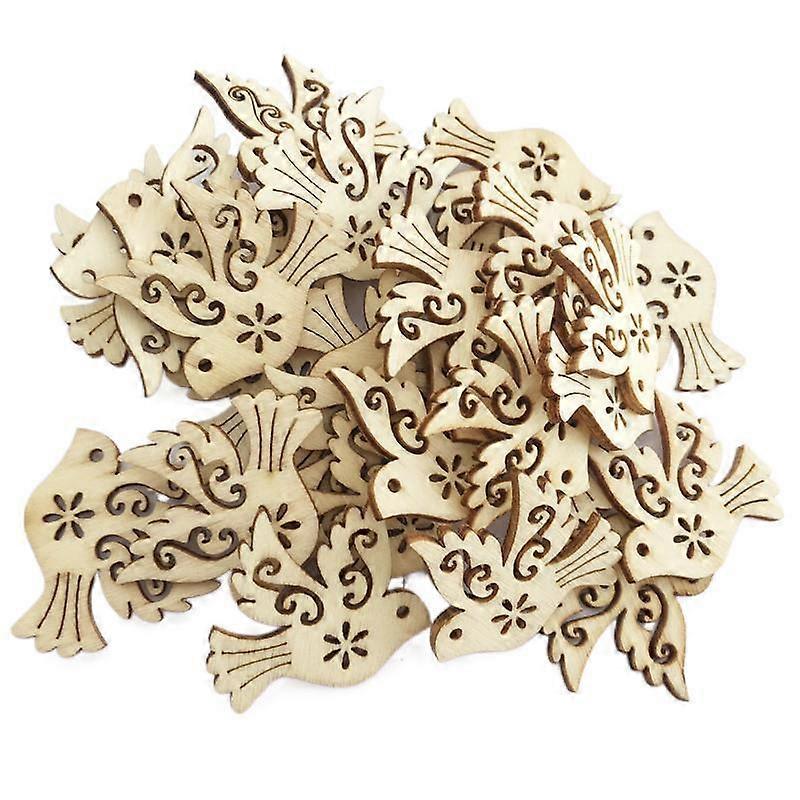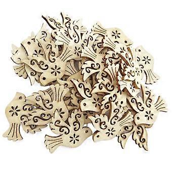 Wooden Pieces Scrapbooking Natural Wood Embellishment Handcrafts Card Making Bird Decor (Wood Colour50Pcs)