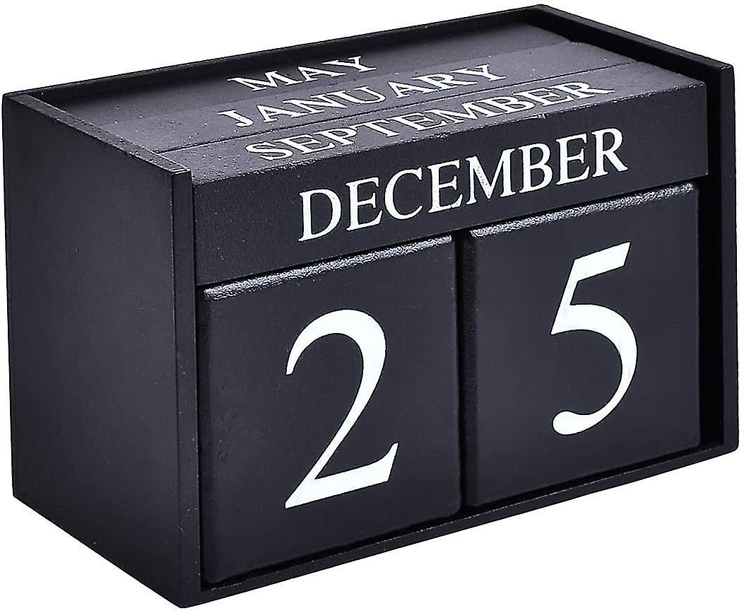 Wooden Desk Blocks Calendar - Perpetual Block Month Date Display Home Office Decoration