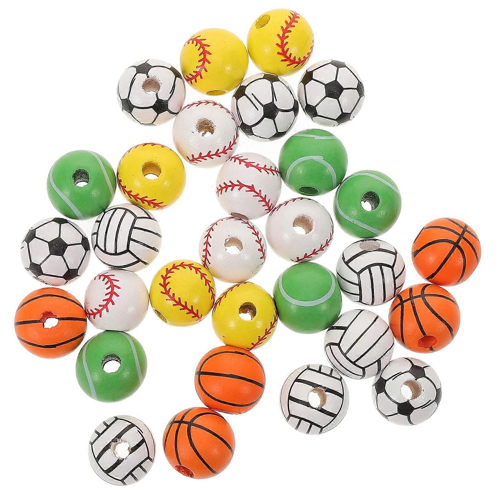 Wooden DIY Sports Beads for Decoration 30Pcs Loose Ball Beads Set
