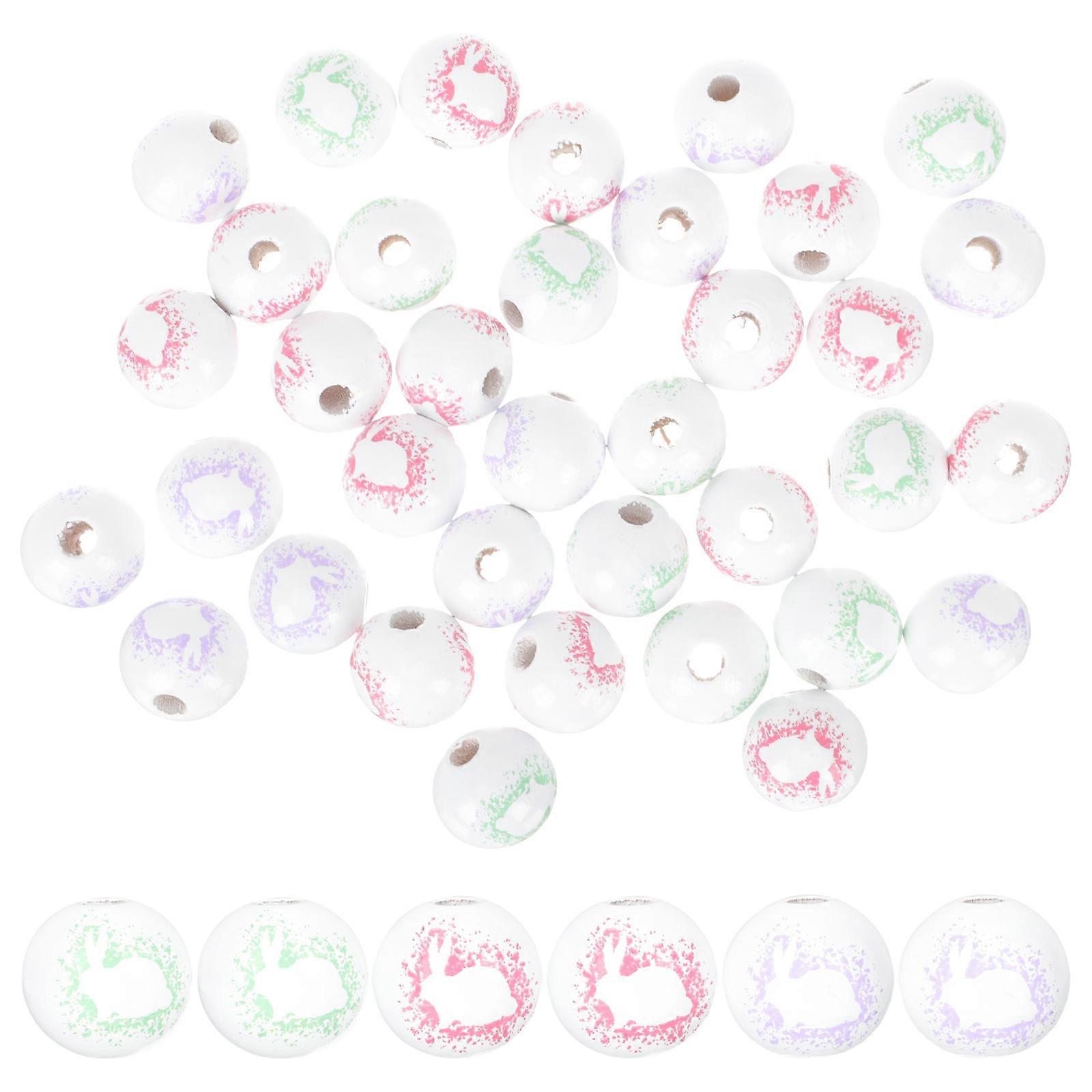 Easter Wood Beads Round Bunny Silhouette for DIY Supplies 180Pcs