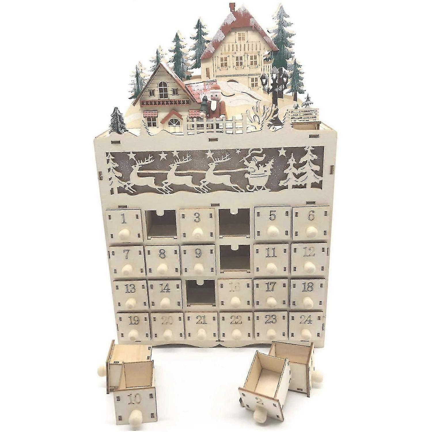 Wooden Advent Calendar Countdown To Led Holiday Decoration 24 Drawers With Led