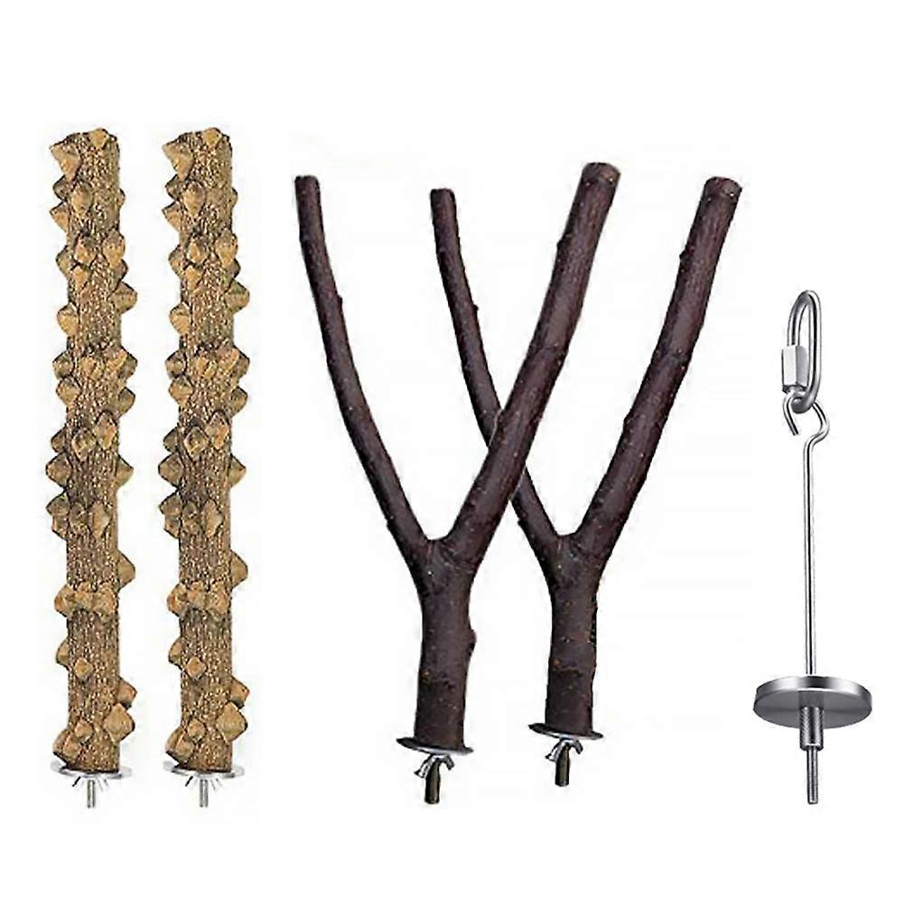 Parrot Wooden Perch Stand Toy for Cage Activity with 8Pcs Set