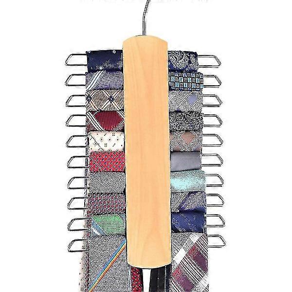 Product Material: Wood + Iron Size: 23*3.8*1.2 cm Color: White, wood color Number of U-hooks: 20 hooks Packaging Content: 1*Massive wardrobe hanger - Safe: Securely holds your tie, belt, or scarf collection and saves space by holding 20 of your ties, belts, or scarves - Versatile: This tie organizer is not just for ties but can also serve as a belt or scarf organizer. Say goodbye to rummaging through a pile of ties and organize them with our tie hanger - Durable: The high-quality finish on the wooden tie rack won't disappoint. The smooth finish on the dark oak wood adds an extra touch of elegance to showcase your tie collection. The tie holder will look fantastic in your wardrobe - Simple: Each tie is accessible from all angles. You don't have to struggle with moving the hangers to find your tie. With 360-degree access, the perfect tie awaits - Easy to Use: This wardrobe hanger makes it easier to store and sort high-quality ties without wrinkling or pressure points. The clothing hanger can be hung on the wall, closet door, cabinet, or in the car with just a single grip