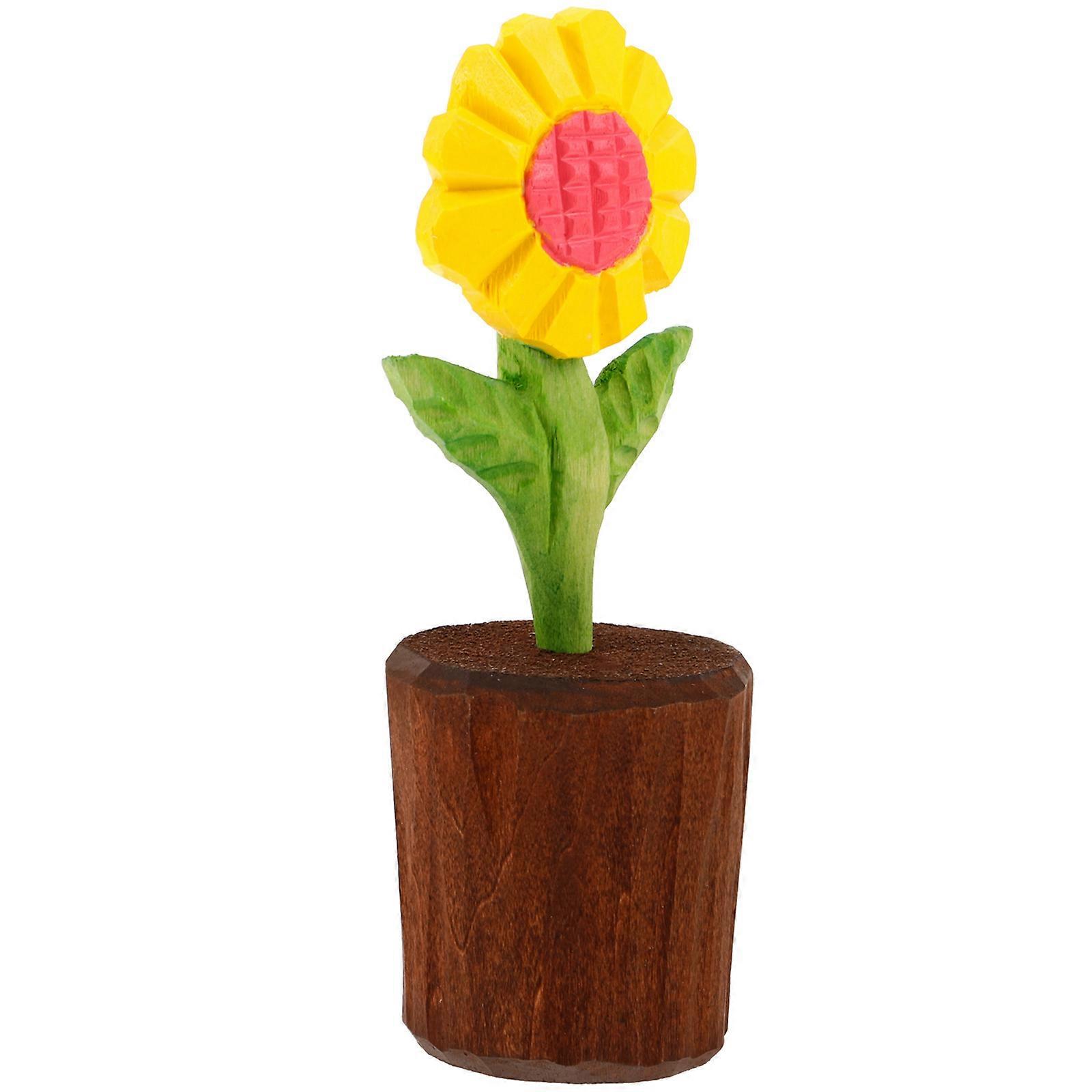 Wood Sunflower Artificial Flower Decoration For Home Office 5.1X3.9X2in Hand Carved Gift 2Pcs