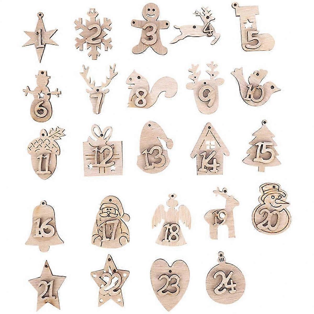 Xmas Decor Wooden Label Decor for 6Sets Christmas Calendar Pendents