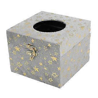 Wooden Tissue Storage Box Star Patterns Lint Fabric Decorative Towel Napkin Container Case for Tabletop Grey