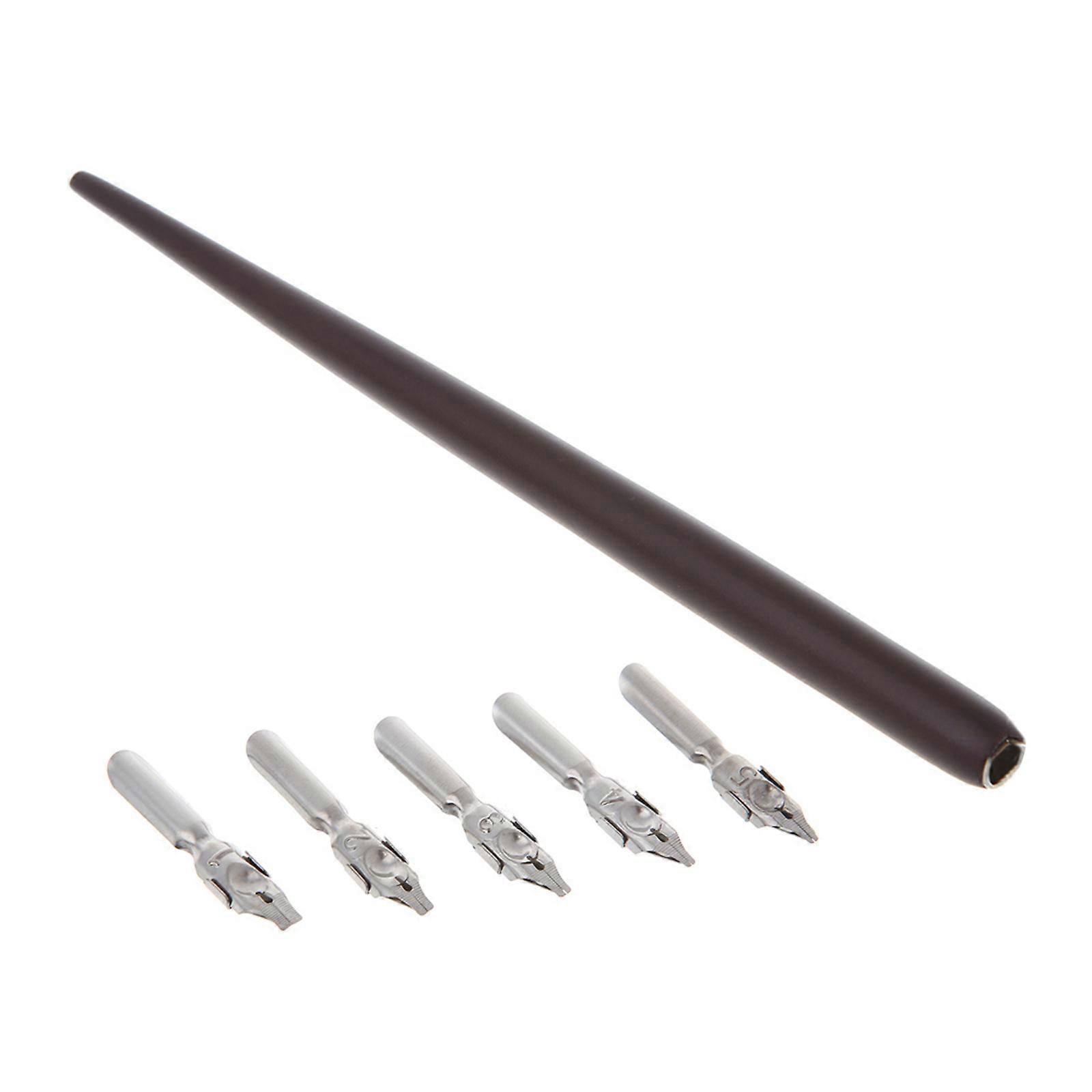 Wooden Dip Pen Holder with 5 Nibs Gift Set Art Elegant Gift Accessories for Writing Drawing Painting Picture Supplies