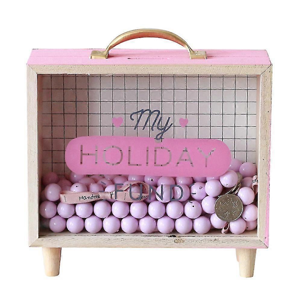 Wooden Coin Box Handle Slots Money Box Wooden Money Box Bedroom Decorative Standing Storage Piggy Bank (pink)