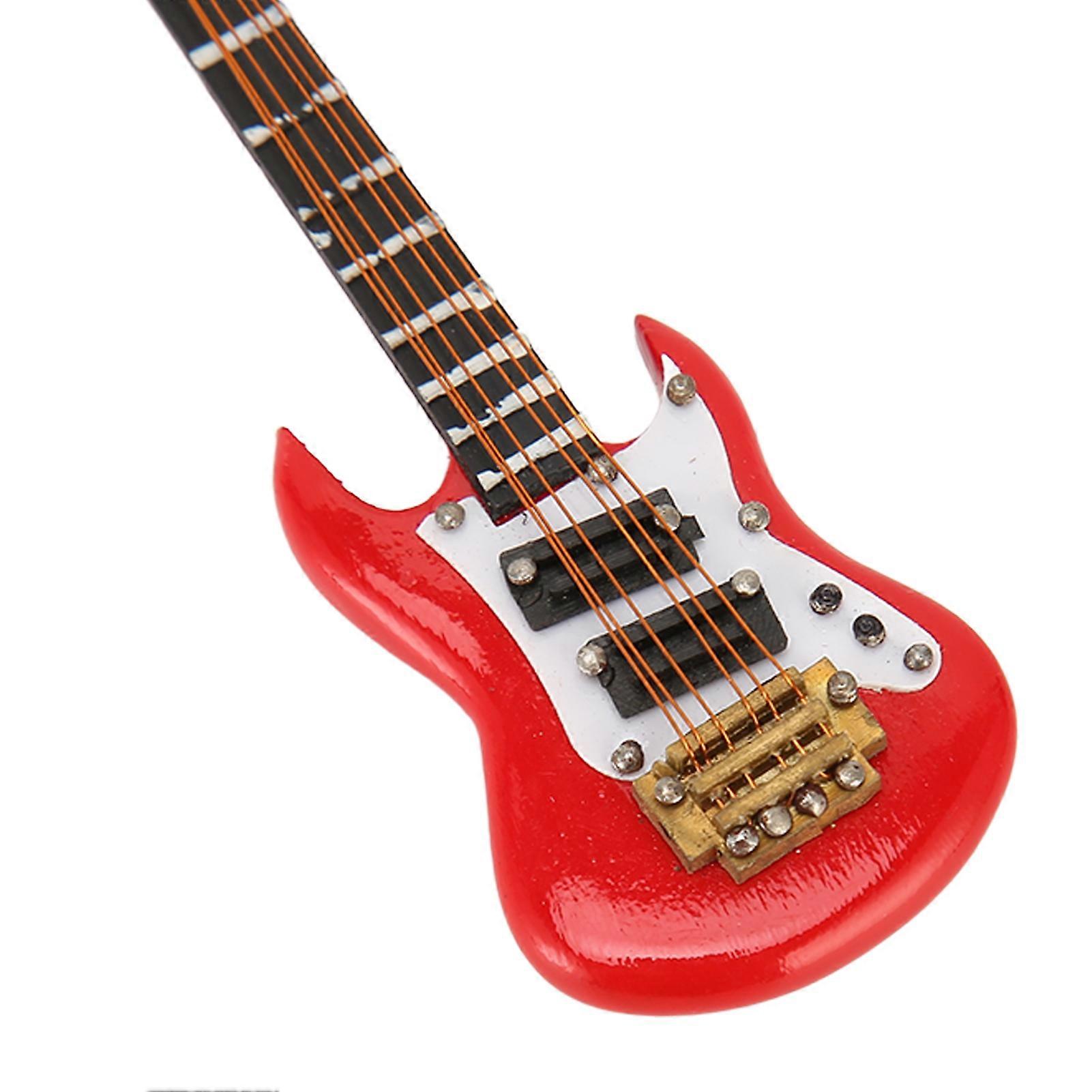 Wooden Miniature Electric Guitar Brooch Exquisite Lifelike Mini Red Electric Guitar Musical Brooch for Music Lover
