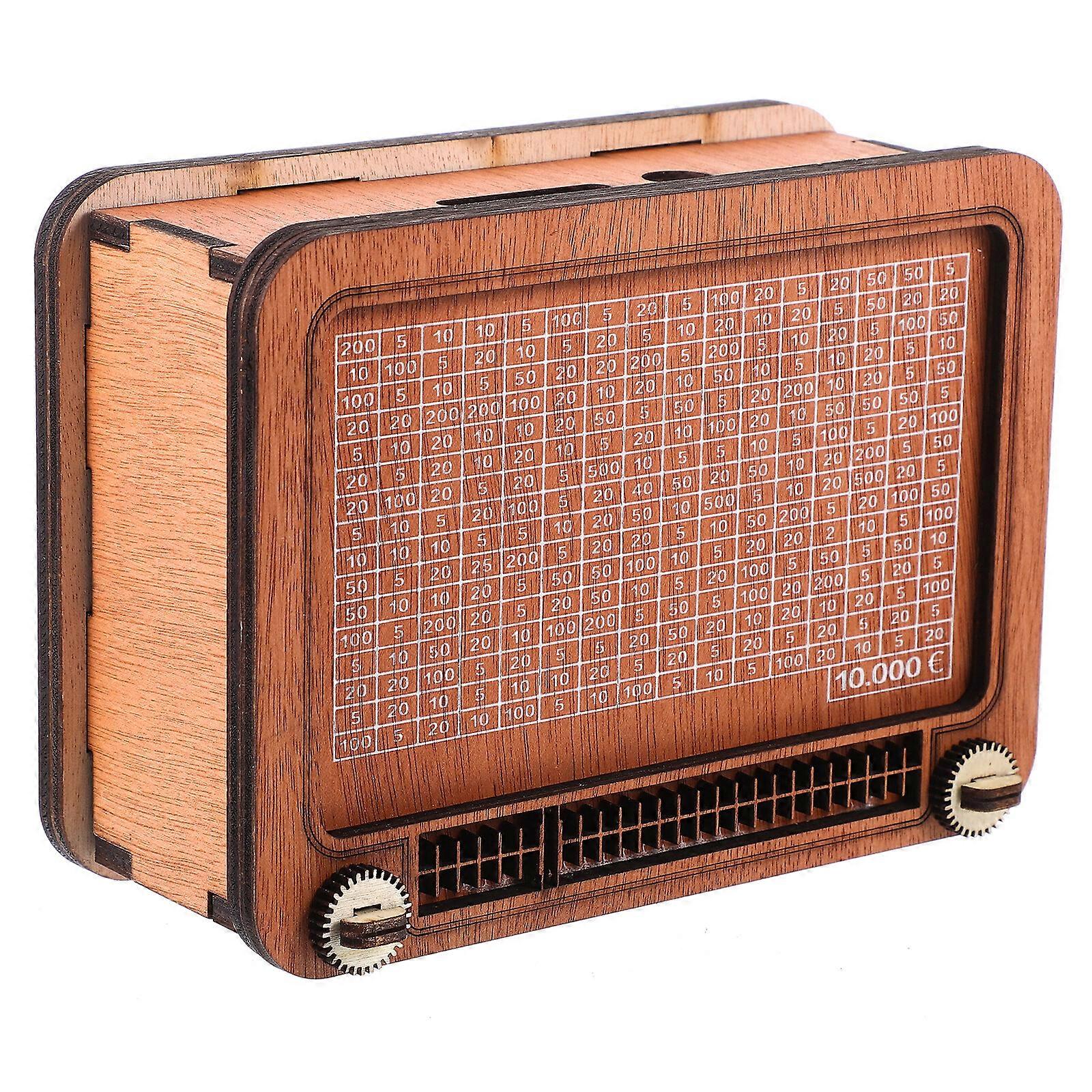 Wooden Radio Piggy Bank Saving Money Pot Change Container Coin Bank for Home