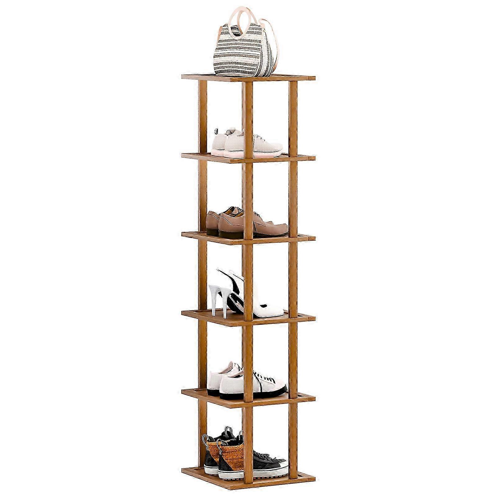 6-Tier Wooden Shoe Rack, Narrow Bamboo Storage for Entryway & Closet