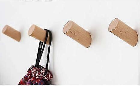Wood Wall Hooks, 4 Pack Coat Hooks Wall Mounted Rustic Wooden Hooks Heavy Duty Robe Hook Hat Rack | Hooks for Hanging Bathroom Towels (Beech Wood) n