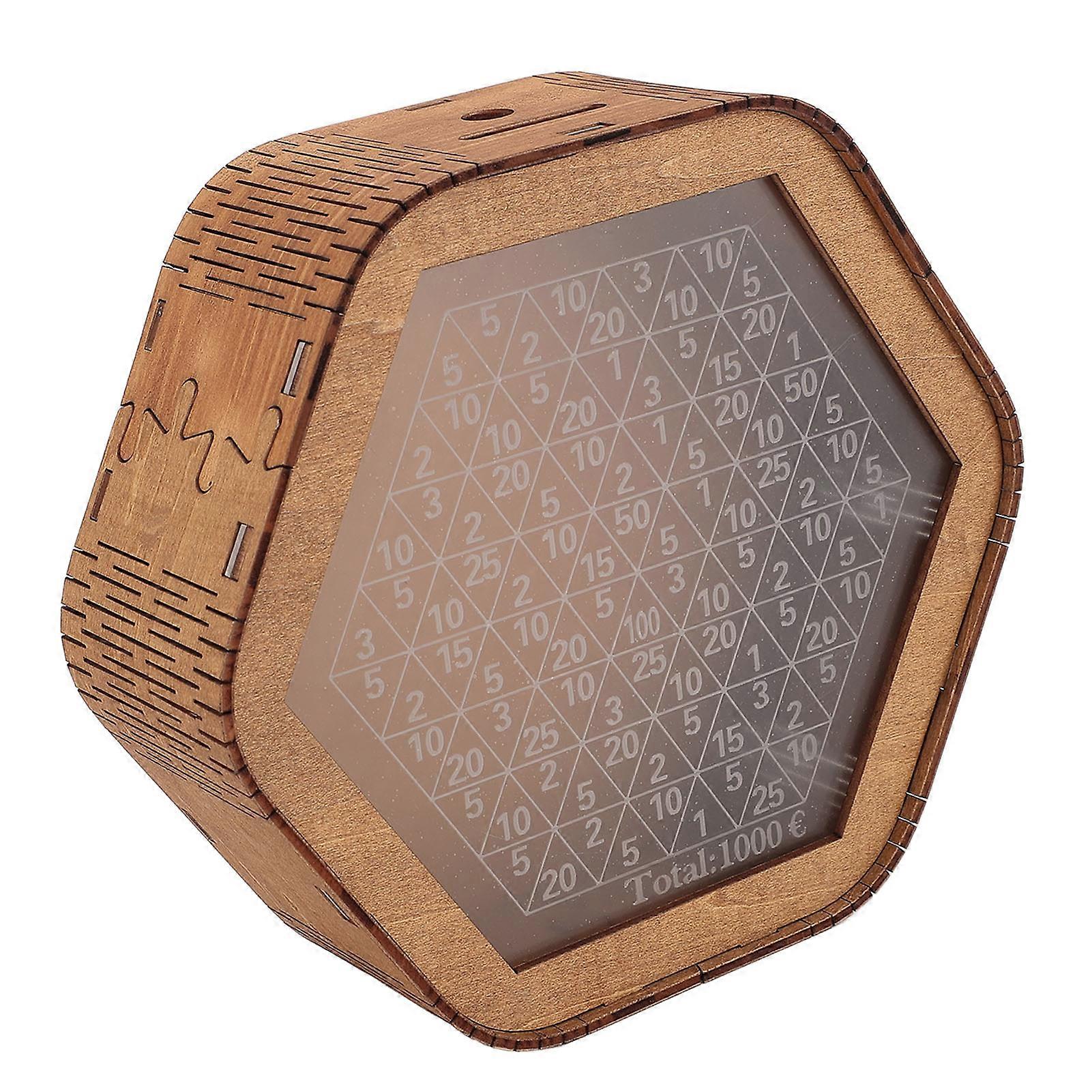 Wooden Money Saving Jar Hex Shaped Exquisite Money Bank Piggy Bank with Digital Scale for Kids and Adults Home Decor Gift