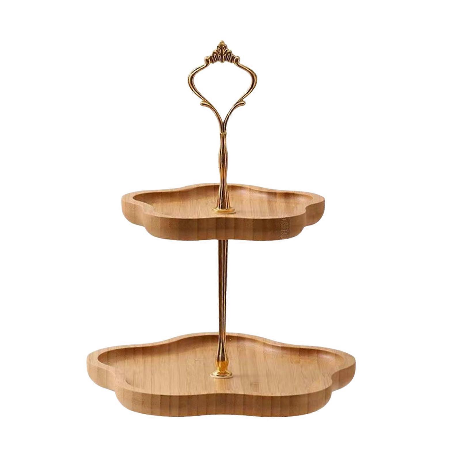 Wood Tiered Serving Tray Cupcake Tower Elegant Flower-Shaped Tiered Tray Stand for Fruits Cakes Desserts Stable Bamboo Display Stand for Parties Event