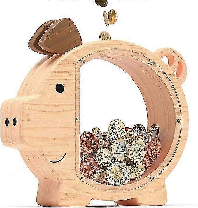 Wooden piggy bank for kids, cute piggy bank for boys and girls, unbreakable wooden piggy bank, creative piggy bank, personalized gift for kids birthda