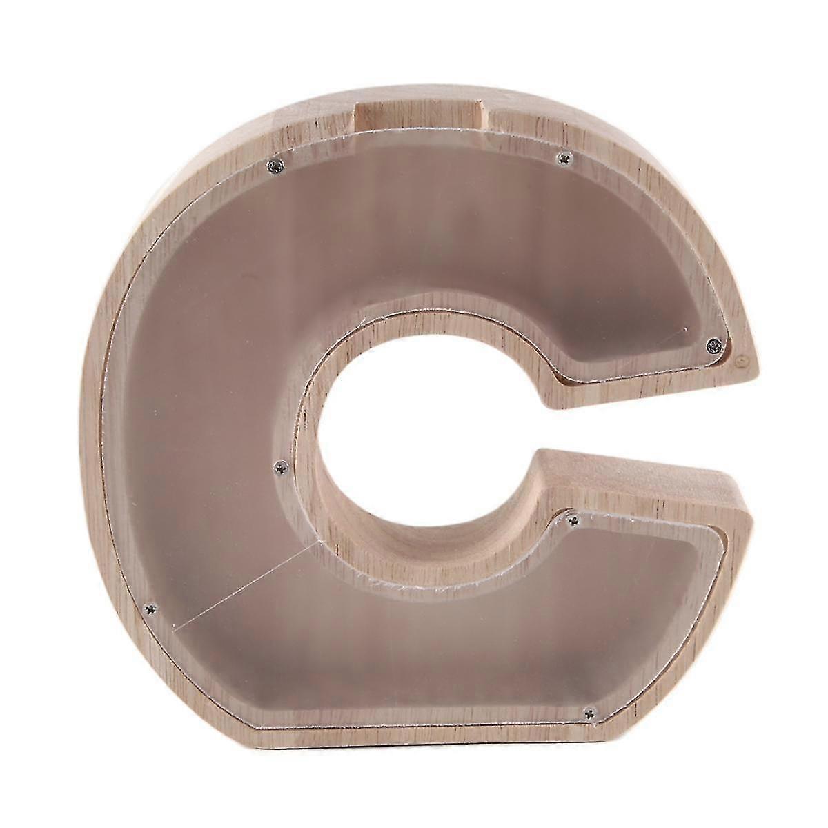 Wooden Letter Piggy Bank English Alphabet Savings Jar Clear Glass Coin Saving Jar C
