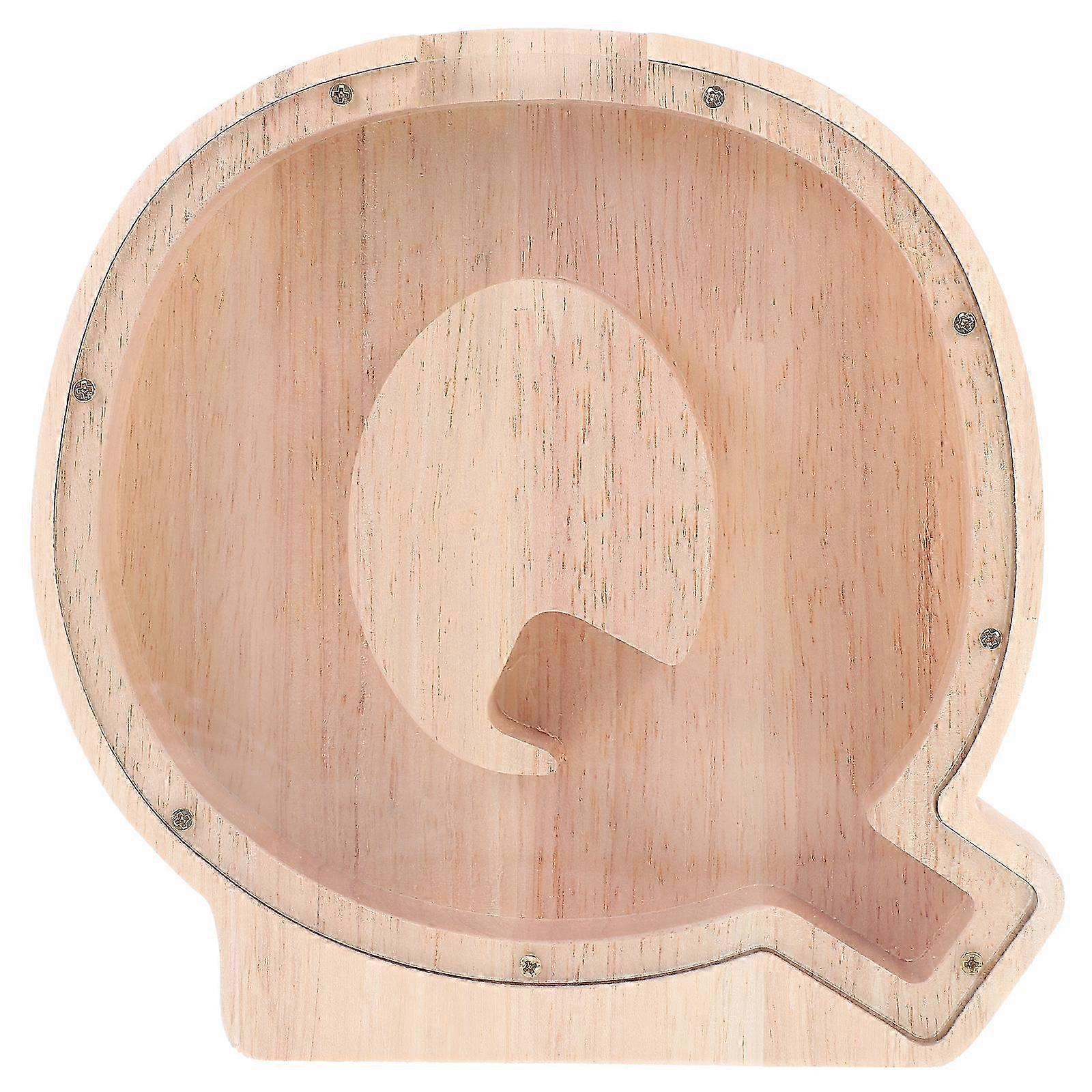 Wooden Piggy Bank Letter Q - Kids Coin Saving Box - Light Yellow